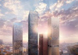 Symphony 34 расположится в пешей доступности от станции метро «Дмитровская». Архитектурный концепт принадлежит Kleinewelt Architekten. В проекте построят 4 башни высотой от 36 до 54 этажей. Объект образует целостный стиль, выражающийся в единстве, сложности и сочетаемости элементов. Каждому корпусу присвоят уникальное название. Помимо жилых домов в комплексе появится подземная парковка.